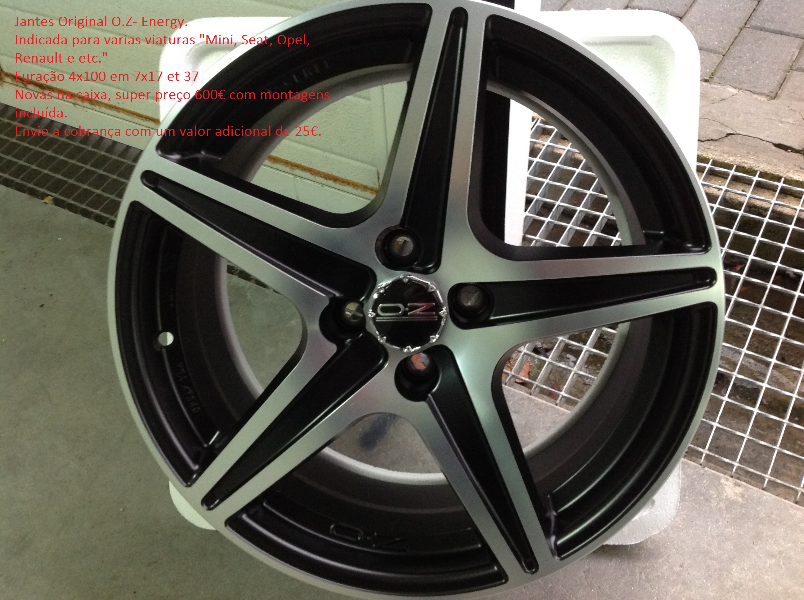 Jantes Original O.Z- Energy. Indicada para varias viaturas "Mini, Seat, Opel, Renault e etc." Furação 4x100 em 7x17 et 37