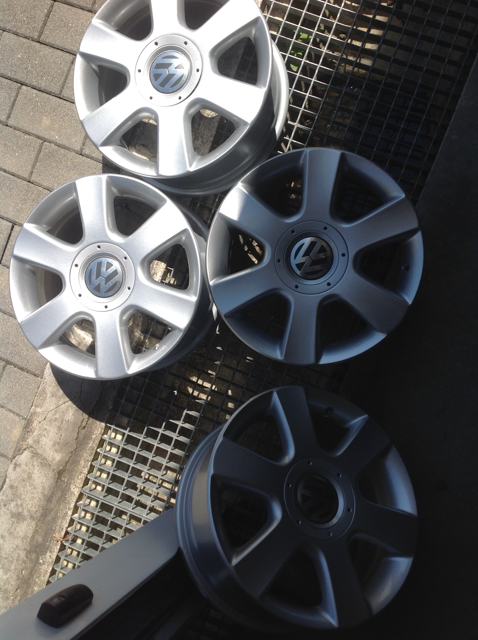 Jantes original VW Golf. Furação 5x112 7x16 et 43. Reparadas e pintadas em cinza, como novas.